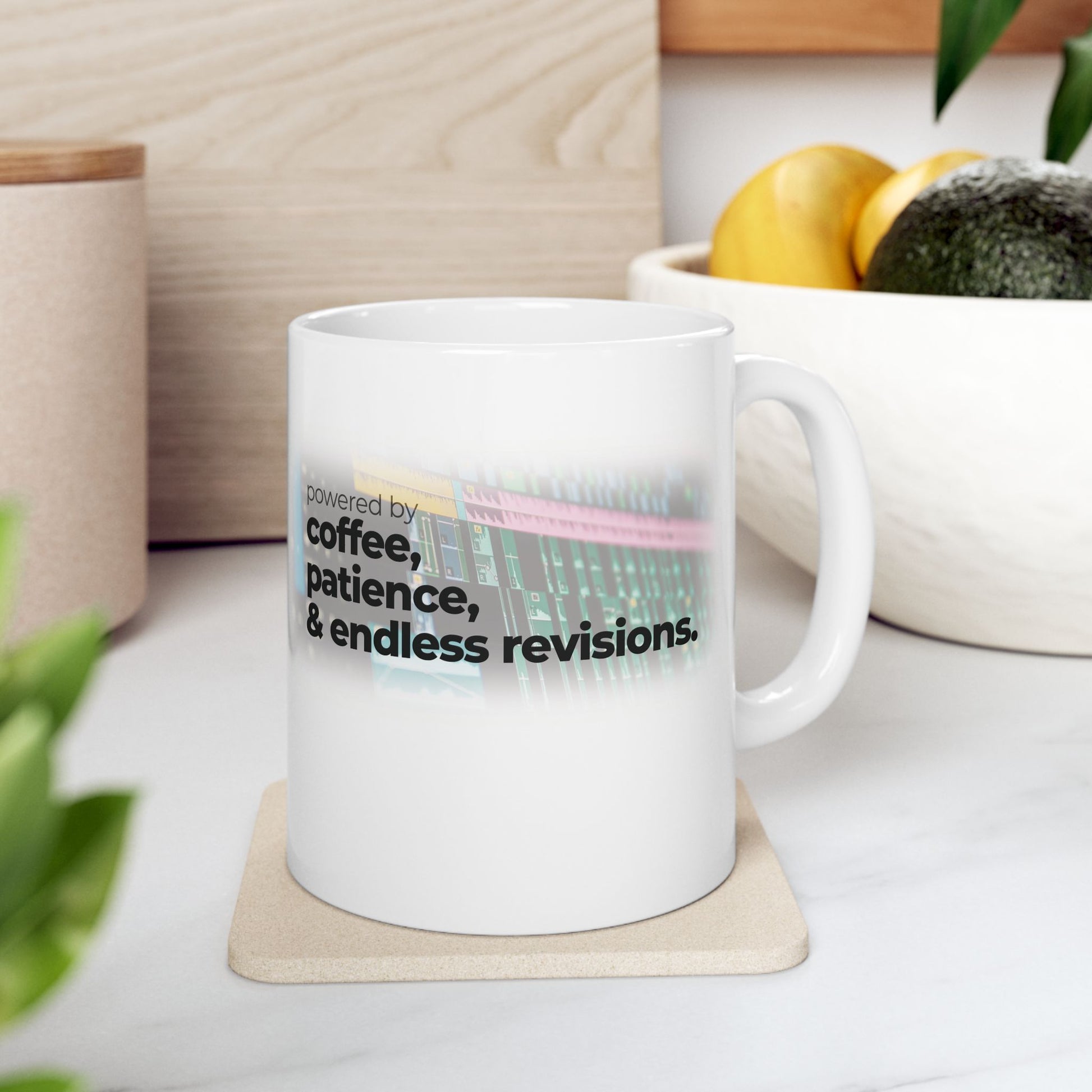 Give the gift of caffeine-fueled creativity with our Powered by Coffee, Patience & Endless revisions mug - made for video editors who live for the perfect cut. Made from durable white ceramic, this mug is BPA and lead-free, and safe for microwave and dishwasher use, so it's as practical as it is inspiring.