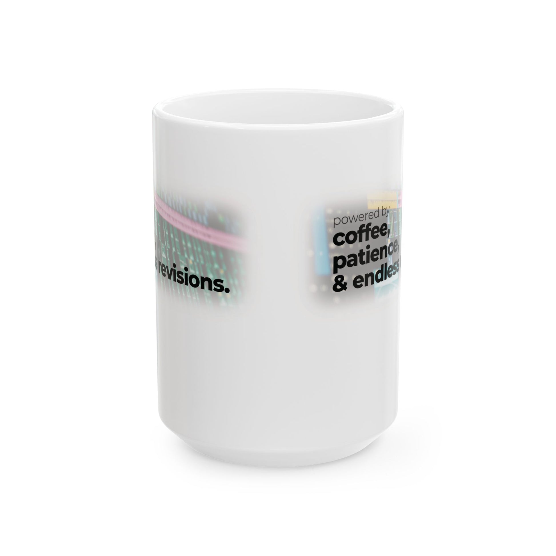 Ceramic Mug for Video Editors (11oz, 15oz) - Powered by Coffee, Patience & Endless revisions