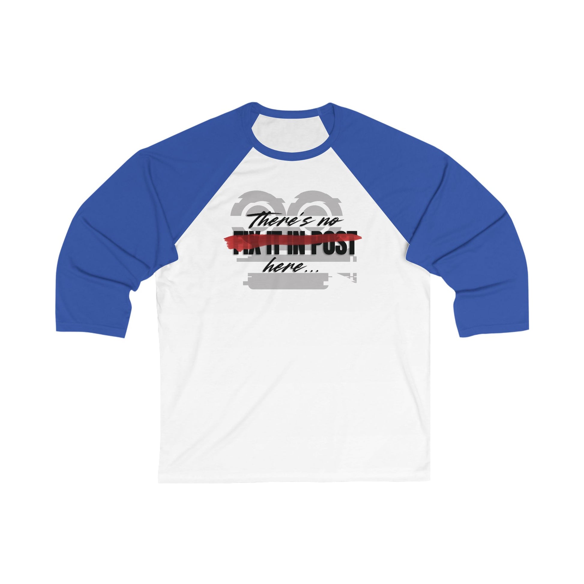 Videographer Unisex 3/4 Sleeve Baseball Tee - There's no "fix it in post" here...